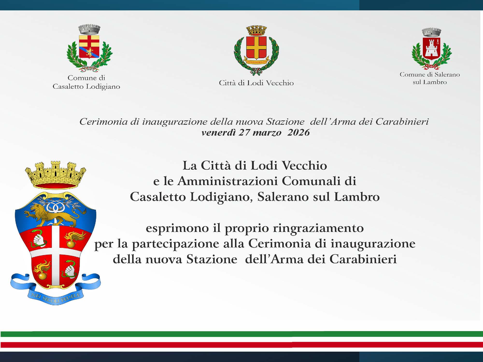 Inaugurazione della nuova Stazione dell'Arma dei Carabinieri a Lodi Vecchio