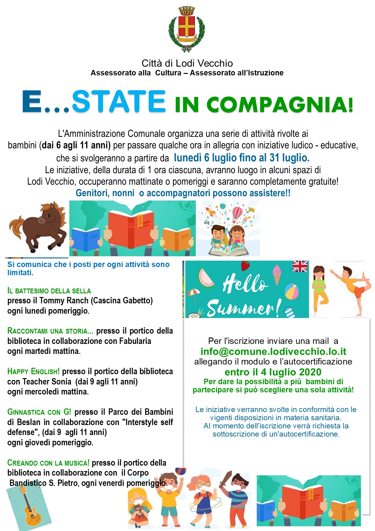 Per l'iscrizione inviare una mail a info@comune.lodivecchio.lo.it allegando il modulo e l’autocertificazione entro il 4 luglio 2020