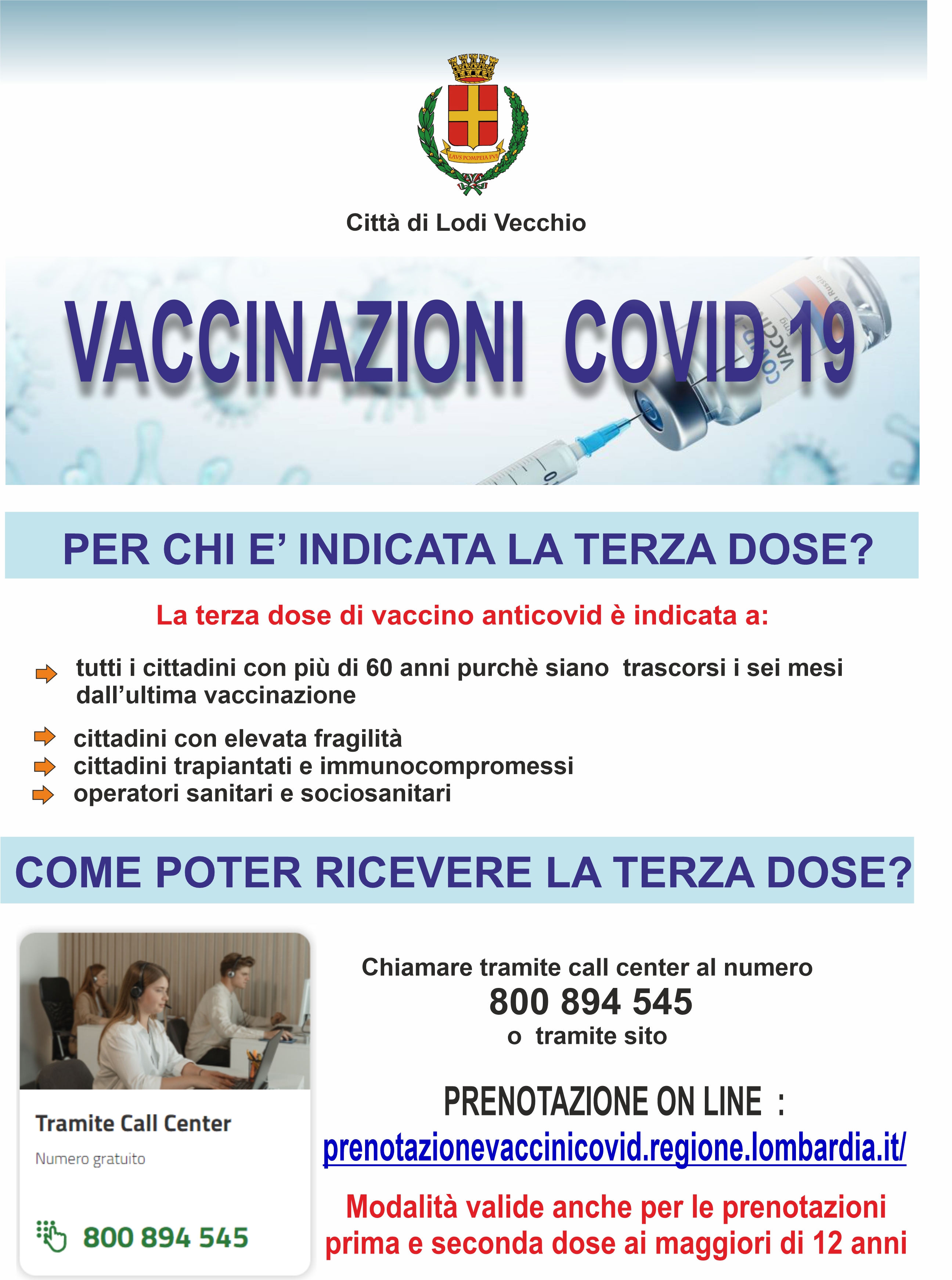 prenotazionevaccinicovid.regione.lombardia.it/Queste modalità sono valide anche per le prenotazioni prima e seconda dose ai maggiori di 12 anni