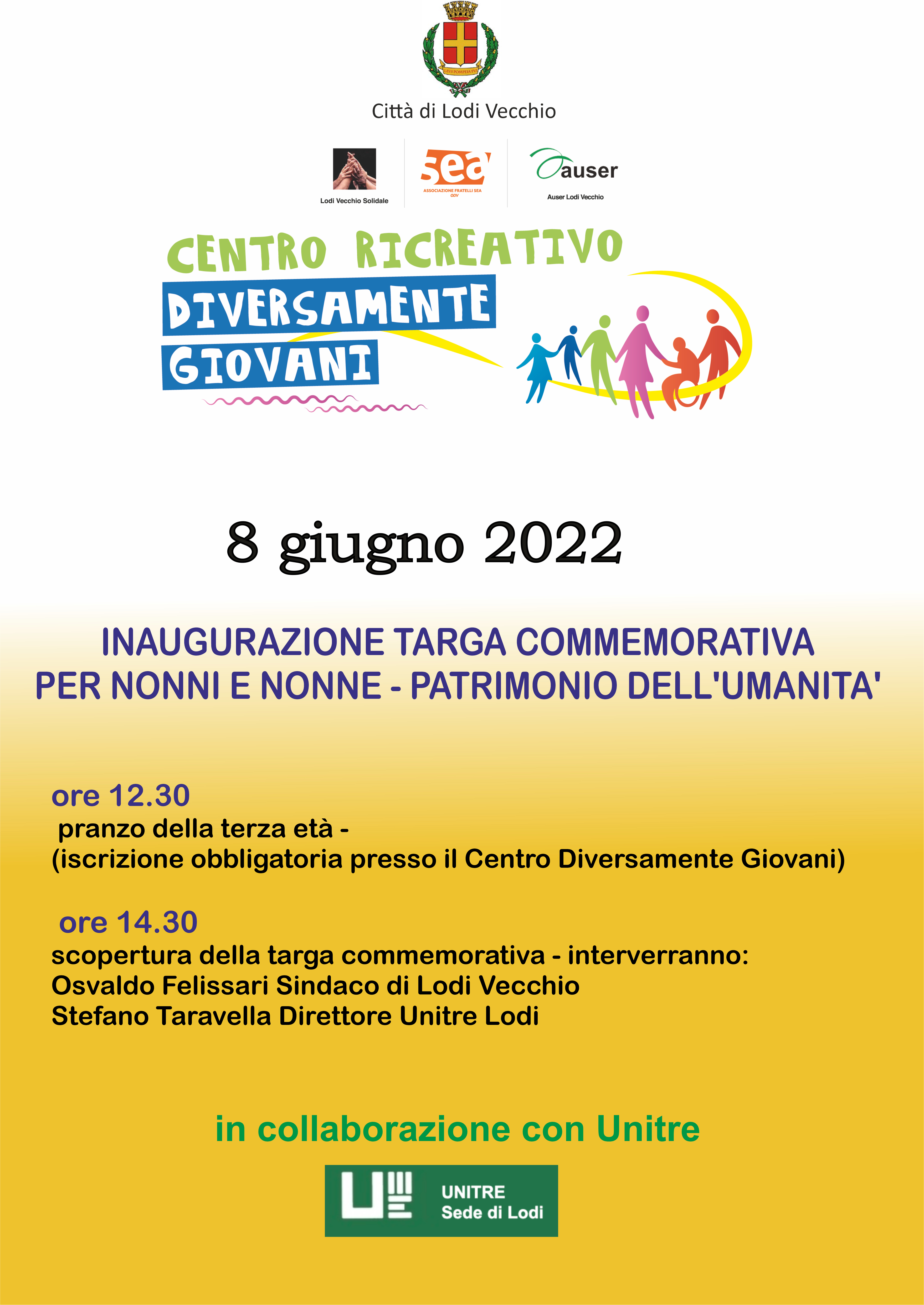 Al centro diversamente giovani inaugurazione targa dedicata ai nonni - patrimonio dell'umanitā.