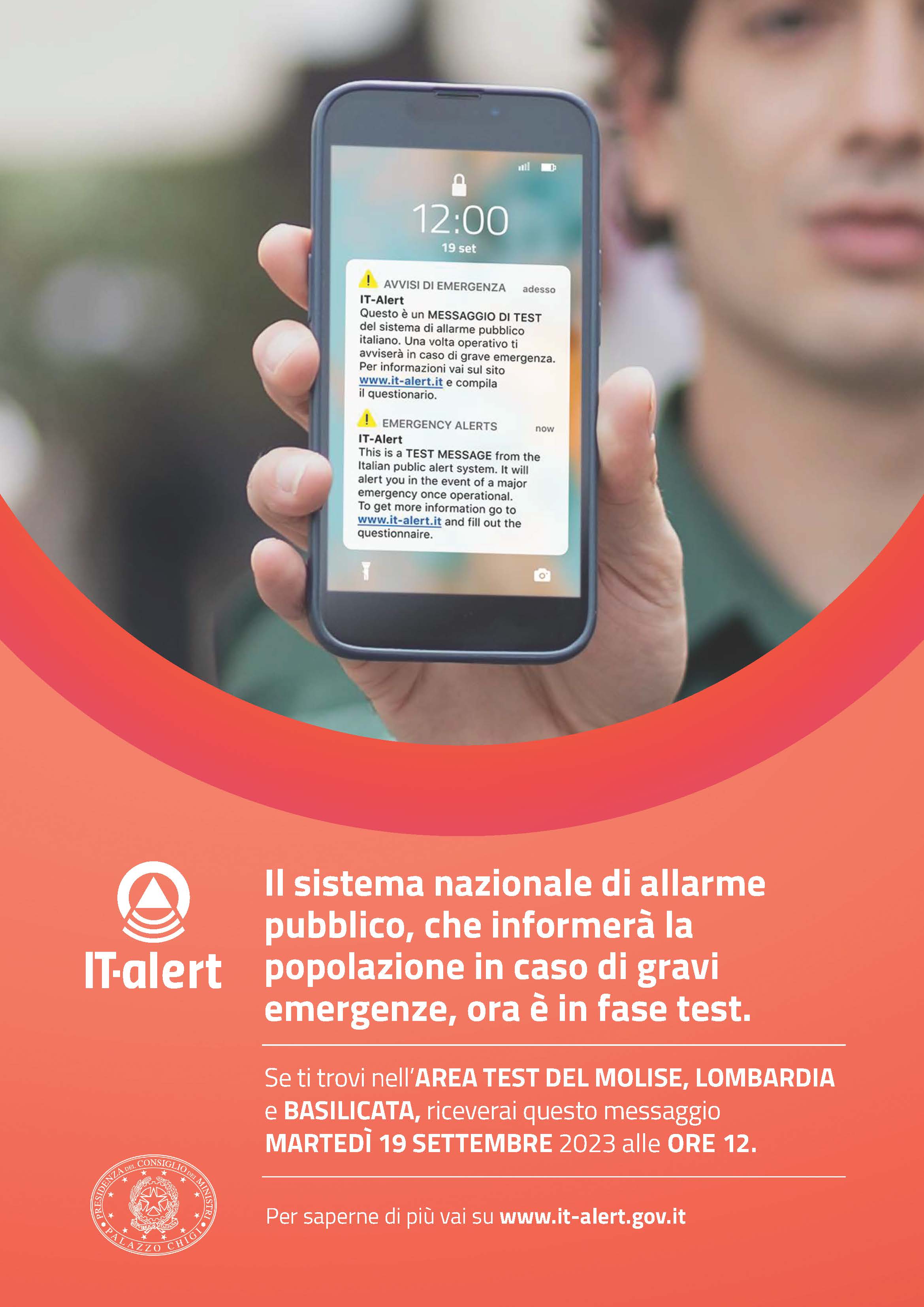 19 settembre 2023, ore 12:00 - sperimentazione del sistema di allarme pubblico IT-alert.
