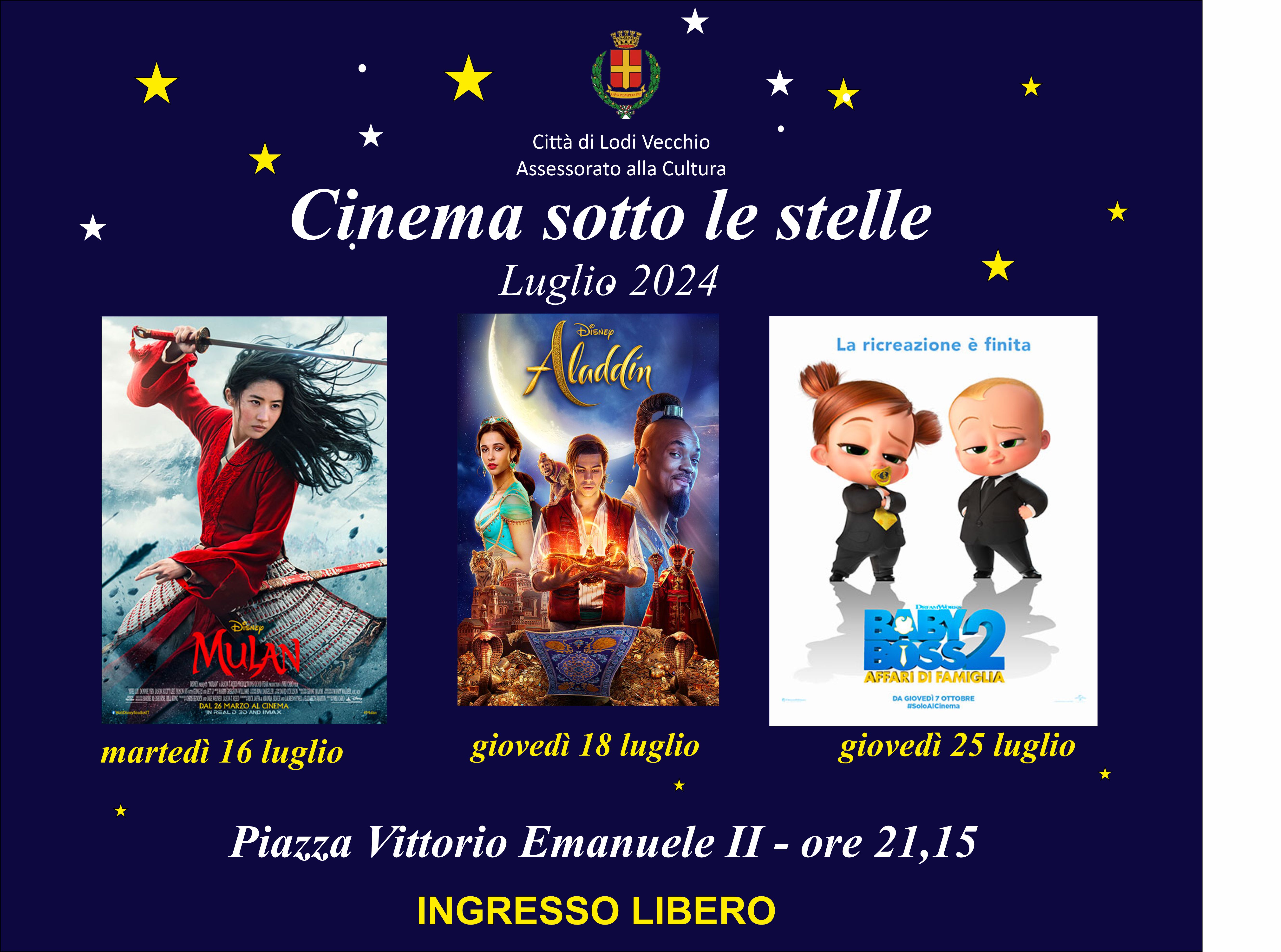 serate in Piazza il 16 - 18 e 25 luglio con tre proiezioni cinematografiche