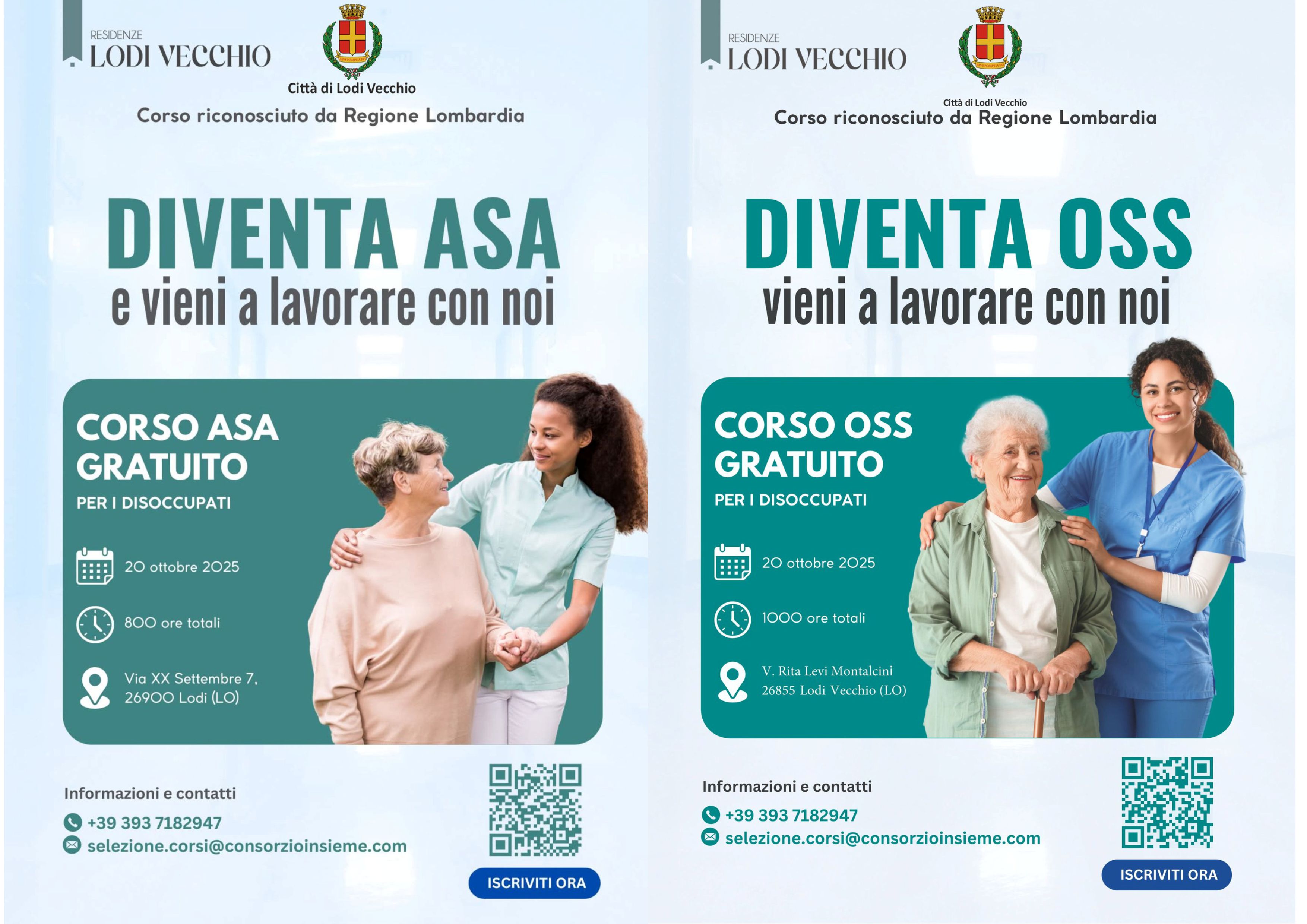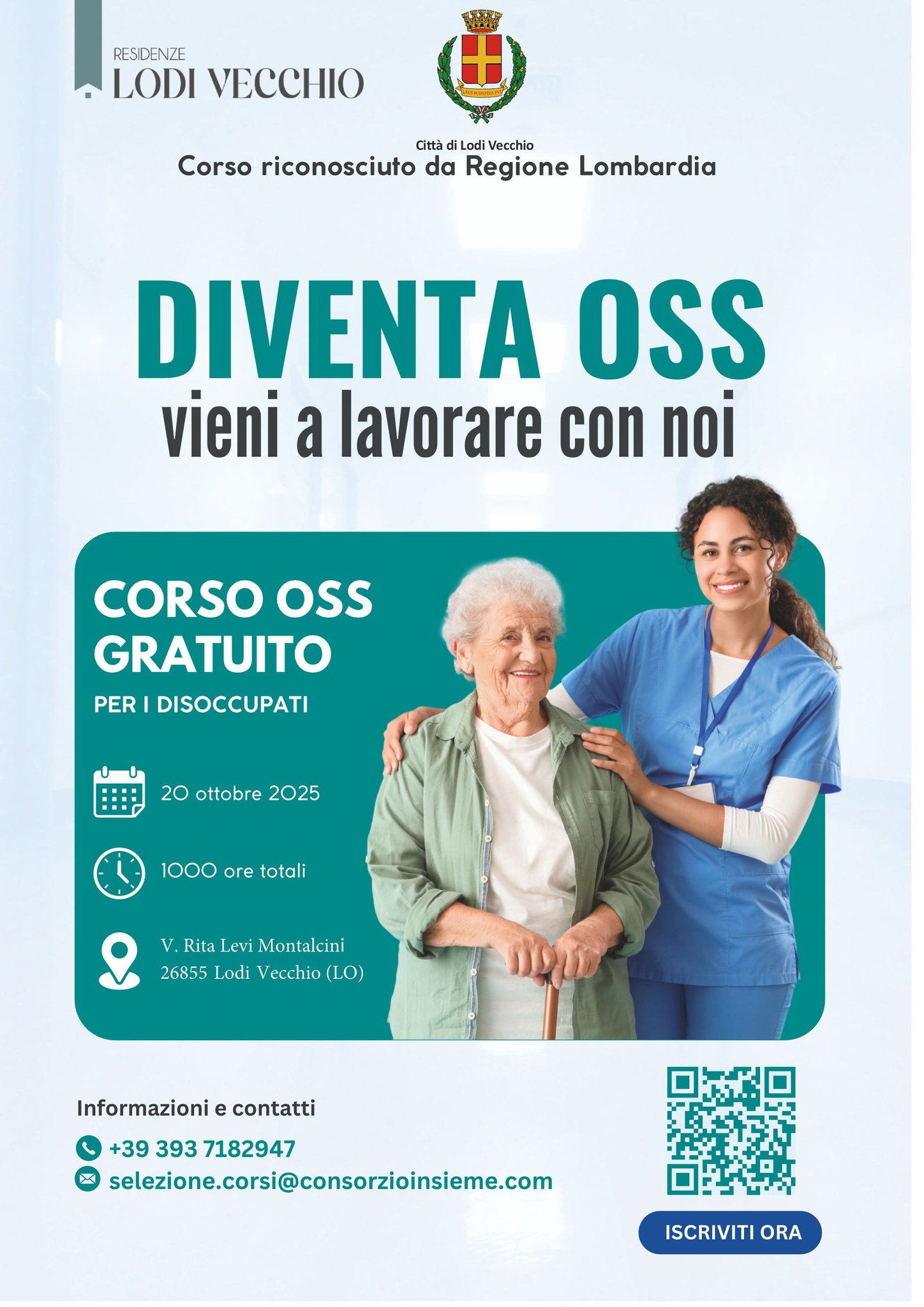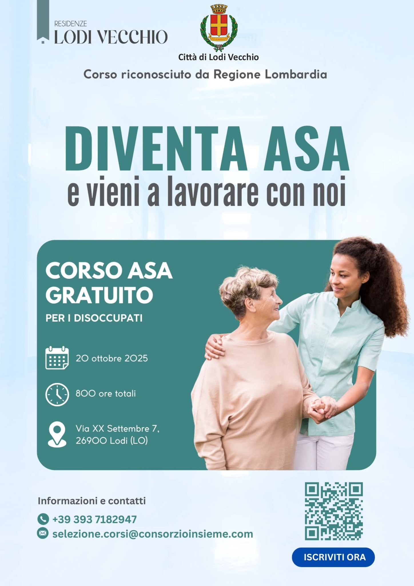 Corso gratuito per disocccupati OSS - ASA Per informazioni ed iscrizioni ai corsi scrivere a : selezione.corsi@consorzioinsieme.com _ telefonare al numero 3937182947