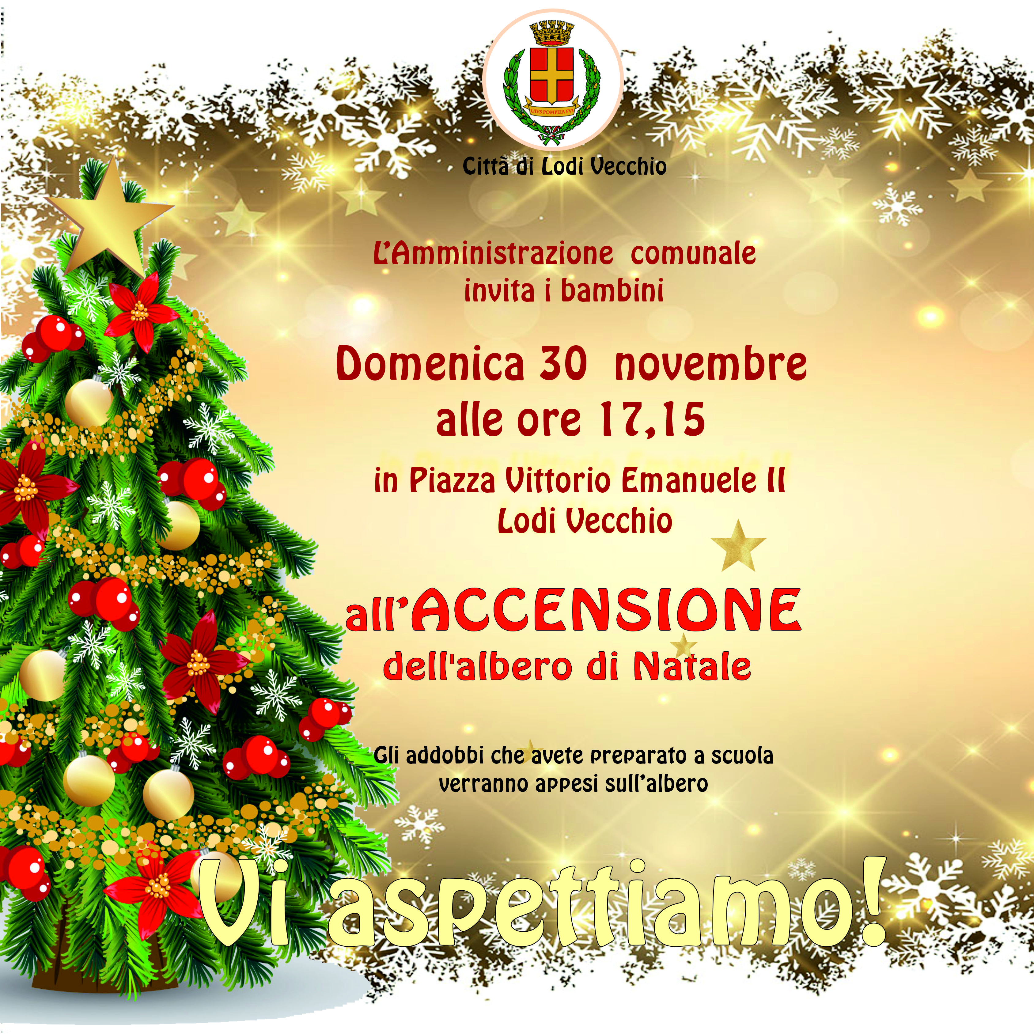 Domenica 30 novembre, alle 17.15, in Piazza Vittorio Emanuele II festeggiamo insieme l’accensione dell’albero di Natale.