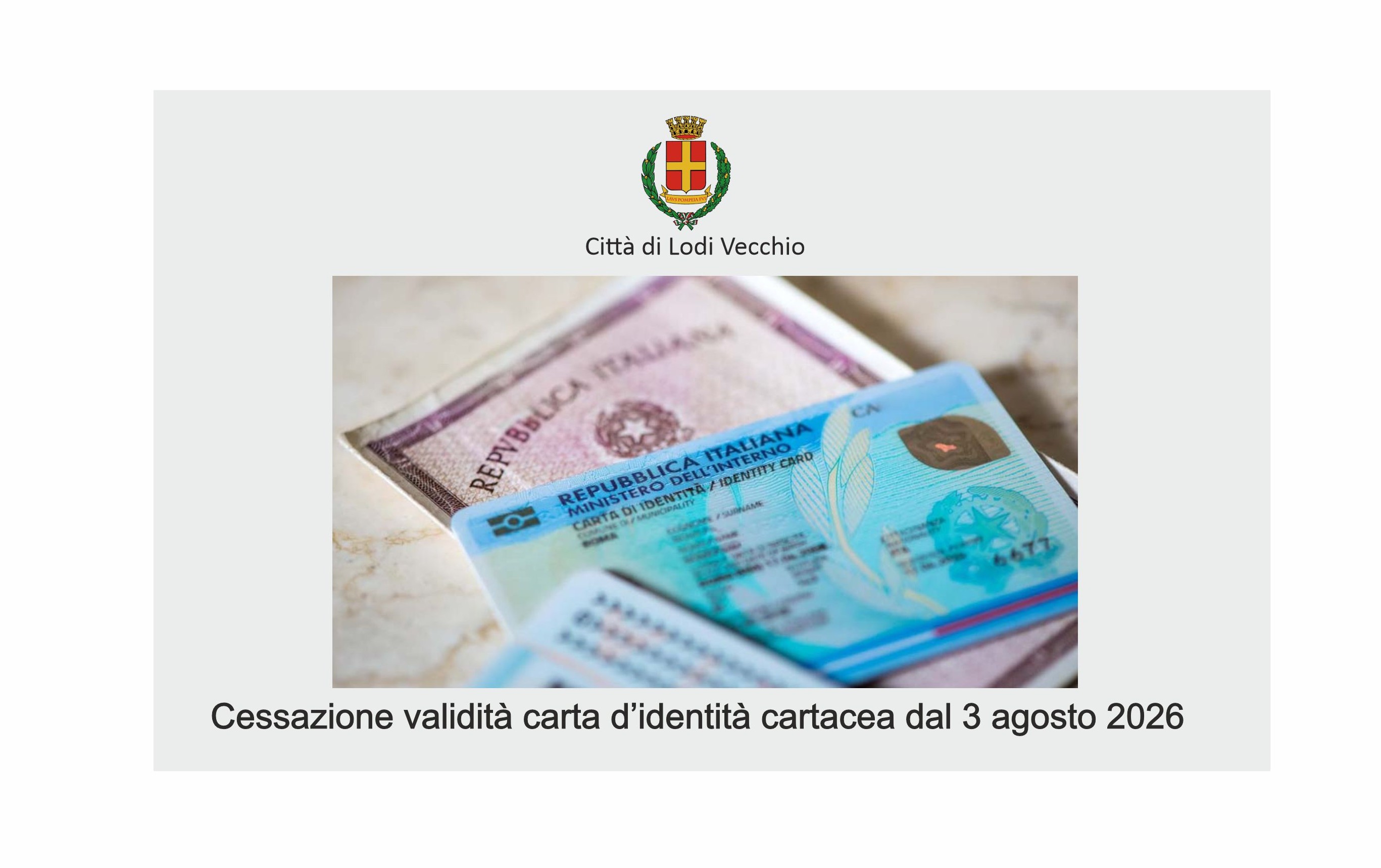 Si informano i cittadini che, in conformità alla normativa nazionale vigente, dal 3 agosto 2026 le carte d’identità cartacee non saranno più valide.